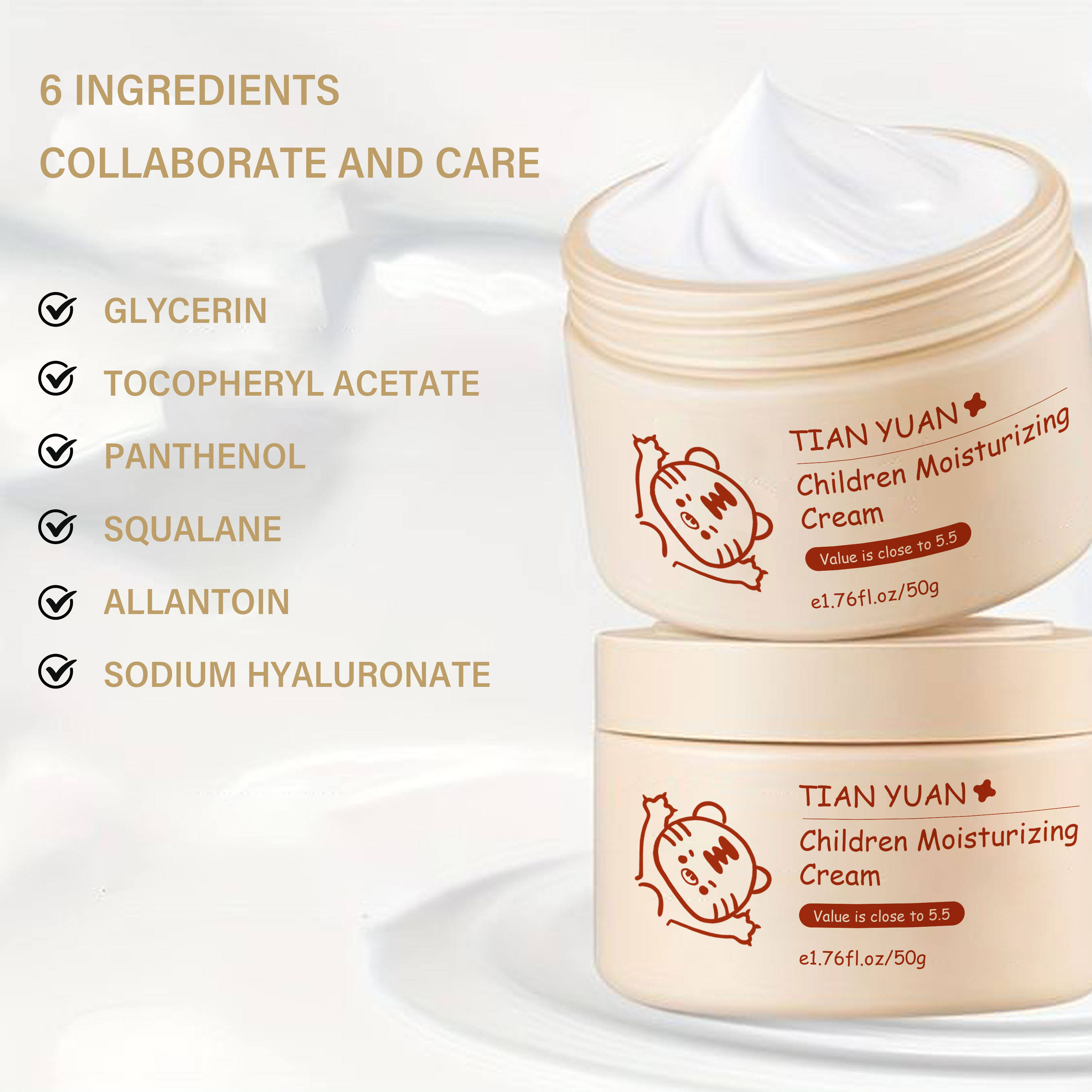 - Glycerin, Tocopheryl Acetate, Panthenol, Squalane, Allantoin, Sodium Hyaluronate